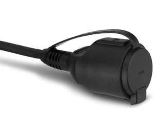 - Die Verlängerung ist mit einem Schutzkontaktstecker und einer Schutzkontaktkupplung mit Verschlusskappe versehen