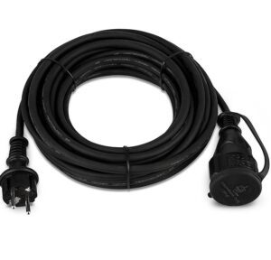 - Technische Details der Stromkabel Verlängerung: Zuleitung H05RR-F 3G1,5 mm². Maximale Belastbarkeit 3680W, 230V~/50Hz,16A. Gewicht: 1460g. Farbe: schwarz
