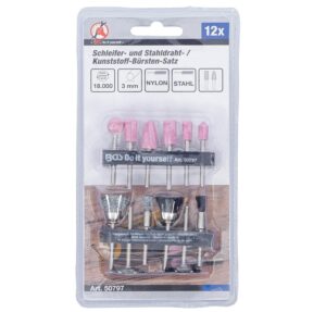 - BGS Diy 50797 | Schleifer- und Stahldraht- / Kunststoff-Bürsten-Satz | 12-tlg.