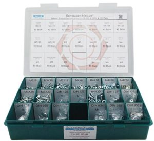 - je 80 Muttern DIN 934 (standard) + 80 Stoppmuttern (DIN 985) für M3 + M4