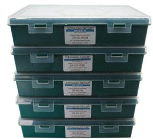 - je 80 Scheiben DIN 125 (standard), DIN 9021 (groß) und Federringe (DIN 127) für M3 + M4