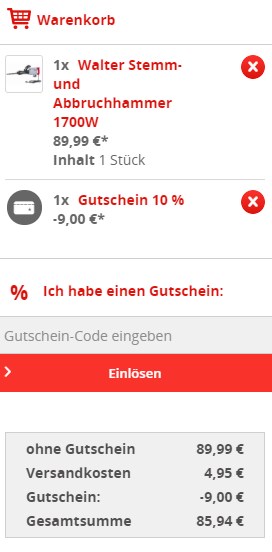 Bei Norma24 bekommt ihr gerade den Walter Stemm- und Abbruchhammer mit 50 Joule für 85,94€ (Vergleichspreis ~120€) Ersparnis ~34€