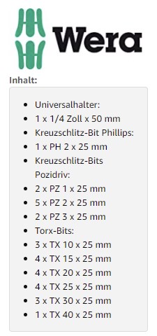 Tolles, hochwertiges Bitset. Besitze selbst mehrere Sets aus dem Hause Wera. 🙂