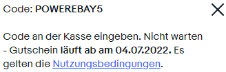 Um auch auf den Preis zu kommen, müsst ihr den Gutschein POWEREBAY5 verwenden.