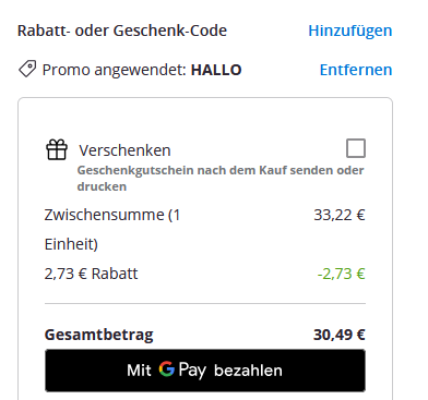 Benutzt dazu den Gutscheincode: HALLO oder den Gutscheincode: PROMO