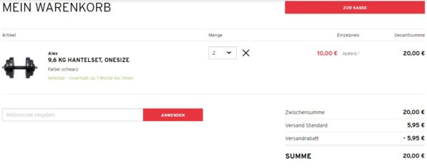 Bei Karstadtsports bekommt ihr heute etwas für alle die sich auch im Home-Office fit halten wollen und die Zeit ohne Fitnessstudio überbrücken möchten, dass Alex Kurzhantelset (je 9,6kg) für 20€ (Vergleichspreis ~40€) Ersparnis ~20€