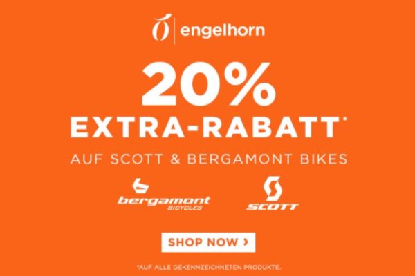 Bei engelhorn bekommt ihr gerade 20% Extra-Rabatt auf Bikes & E-Bikes von Scott und Bergamont