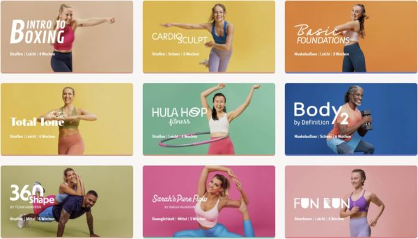 Die Plattform bietet eine Vielzahl von Trainingsprogrammen an, die von Cardio und Krafttraining über Yoga und Pilates bis hin zu Tanz und HIIT (High-Intensity Interval Training) reichen. Diese Programme sind für verschiedene Fitnessziele wie Gewichtsverlust, Muskelaufbau, Ausdauersteigerung und Flexibilität konzipiert.