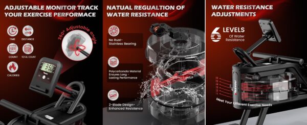 - 【Unübertroffener Widerstand】Das einzigartige Drei-Blatt-Design des Wassertanks maximiert den Widerstand, so dass jeder Schlag nicht nur eine Bewegung ist, sondern den ganzen Körper beansprucht. Diese Eigenschaft macht dieses Wasserrudergerät zur idealen Wahl für alle, die ihr Training intensivieren möchten