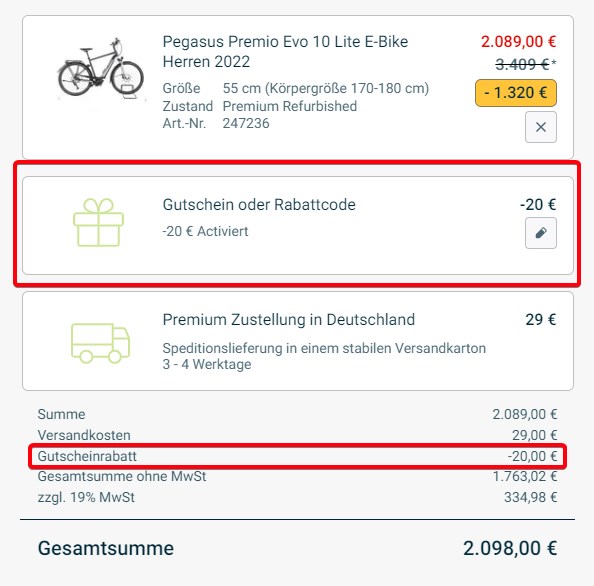 Noch auf der Suche nach einem E-Bike, dann könnte das aktuelle Angebot von Rebike genau das richtige sein, dort bekommt ihr das Pegasus Premio Evo 10 Lite E-Bike Herren 2022 (refurbished) für 2.098€ (Vergleichspreis ~2.479€) Ersparnis ~381€