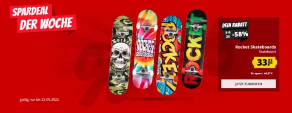 Bei SportSpar bekommt ihr gerade Rocket Skateboards (8 verschiedene Designs) für 37,28€
