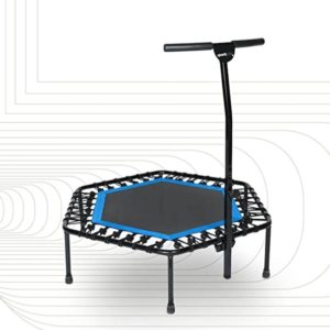 - Fitness Trampolin, 36 Gummiseile, 5-fach höhenverstellbarer Griff, Randabdeckung, Spezialwerkzeug zum Spannen der Seile, detaillierte Aufbauanleitung
