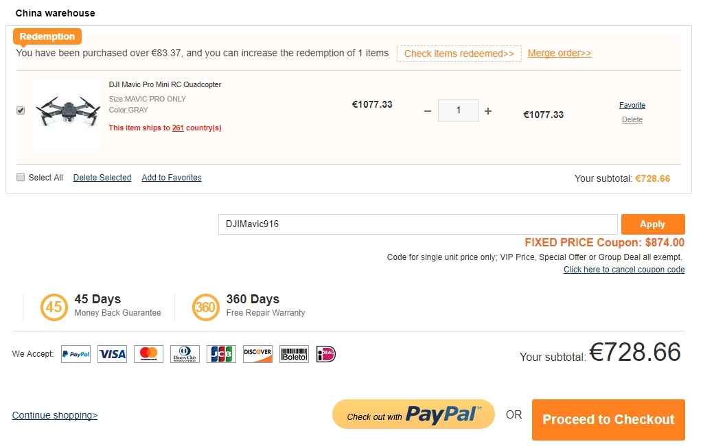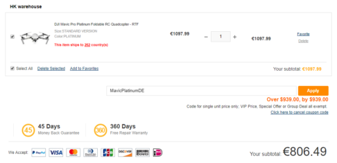 DJI hätte die Preise erhöht. Tomtop bekommt jetzt höchstens den Flash-SAle Deal abgebildet.