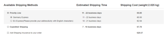 Das geht aber nur wenn ihr die Versandform „Priority Line Germany Express“ benutzt. Ein schnellerer Versand hat für euch keine Vorteile, sondern eher Nachteile (eventuelle deutsche Verzollung + Einfuhrumsatzsteuer).