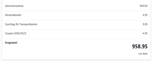 Mit dem Gutscheincode: Vielfalt kann man die Versandkosten noch etwas drücken.