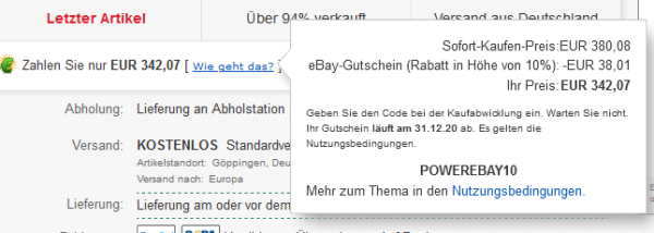 Passend dazu gibt es jetzt bei Ebay eben einen guten Deal, denn dort gibt es die DJI Mini für 342,07€ dank dem Gutscheincode: POWEREBAY10