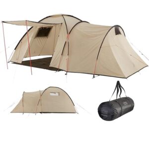 - Große abgedeckte Belüftungsöffnungen auf der Außenplane – Für Komfort und angenehmen Schlaf – Atmungsaktives Innenzelt mit Moskitonetzen – Luftzirkulation sorgt für einen erholsamen Schlaf