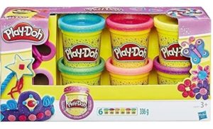 - Dieses 6er-Pack Play-Doh enthält Spielknete, die mit jeder Menge Glitzer gemischt ist sowie 2 Ausstecher in Schmetterlings- und Herzform