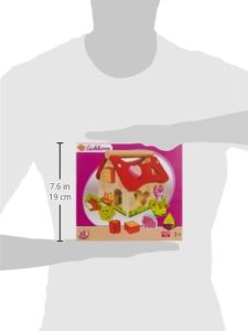 - Dach zum Abnehmen – um die Bausteine wieder aus dem Inneren des Hauses zu bekommen, kann das rote Dach abgenommen und die Steckbausteine ganz leicht herausgenommen werden; Neben Standard Formen wie Drei- und Viereck befinden sich auch süße Tierchen wie Pferd, Kuh oder Hund unter den Bausteinen
