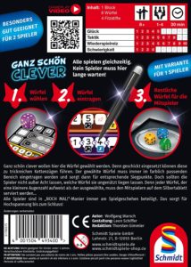 als Würfelspiel gefällt mir "Man muss auch GÖNNEN KÖNNEN" besser: ist simpler, schneller gespielt und bietet dabei genug Abwechselung. Doch wenn dir Ganz schön Clever gut gefällt, dann schau dir auch mal die Nachfolger an: Doppelt so clever und Clever Hoch 3 😉