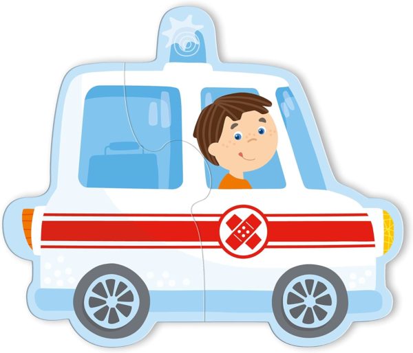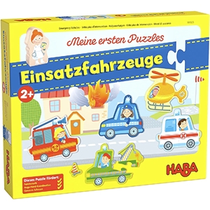 - Meine ersten Puzzles – Einsatzfahrzeuge von HABA Spiel-Set ab 2 Jahren mit 5 Puzzels rund um spannende Berufe und Autos.