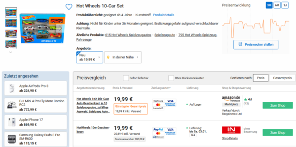 Bei Amazon gibt es das Hot Wheels 10er Die-Cast Geschenkset für 9,99€. (Vergleichspreis: ~19,99€) Ersparnis: ~10€