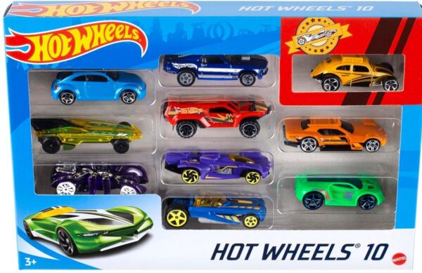 - Mit einem Hot Wheels 10er-Pack Fahrzeuge ist eine sofortige Sammlung möglich.