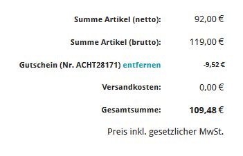 Nutzt dafür den Gutscheincode ACHT28171 im Warenkorb.