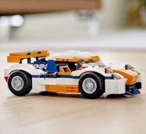 - Dieses LEGO Creator 3-in-1-Set bietet 3 verschiedene Baumöglichkeiten: Nachdem man den Rennwagen gebaut hat, kann man ihn in einen offenen klassischen Rennwagen oder ein leistungsstarkes LEGO Speedboot umbauen, um hinter dem Steuer noch mehr rasante Motorsportaction zu erleben