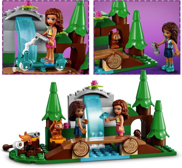 - Das LEGO Friends Camping Set bietet eine Wasserfallszene mit einem aufklappbaren Element, durch welches Kinder Zugang zur Rückseite dieses Spielzeugs haben