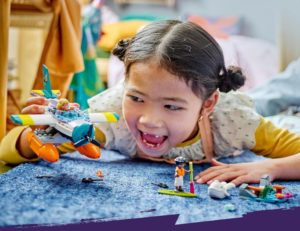 - Das Flugzeug-Spielzeug enthält die LEGO Friends Mini-Puppen Zac und seine Mentorin Dia sowie eine Wal-Spielzeug-Figur, die die Kinder von der Küste retten können