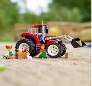 - Enthält einen coolen Spielzeug-Traktor mit riesigen Hinterrädern, eine kippbare Ladeschaufel, die sich anheben lässt, und eine Kabine, in die eine Minifigur passt