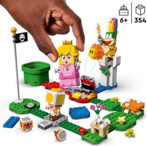 - LEGO Super Mario “Abenteuer mit Peach” Starter Set enthält eine interaktive Prinzessin Peach Figur, Lemmy, einen Hothead und einen gelben Toad