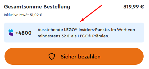 Und zusätzlich gibt es noch 4800 LEGO Insiders Punkte im Wert von 32€.