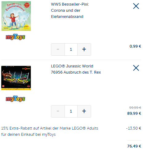 Um auch auf den Preis zu kommen, müsst ihr den Gutschein LEGOADULTS15 sowie BUCHFREI verwenden und zusätzlich diesen Füllartikel mitbestellen.