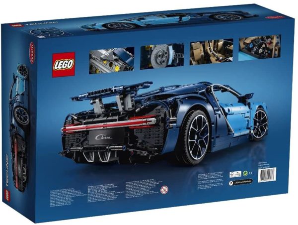 - Exklusive LEGO Nachbildung des Bugatti Chiron im Maßstab 1:8 mit einer Fülle an luxuriösen Funktionen, zu denen auch die aerodynamische Karosserie mit aktivem Heckflügel, die Niederquerschnittsreifen auf Speichenfelgen mit Logo, detailgetreue Bremsscheiben und ein W16-Motor mit beweglichen Kolben zählen.