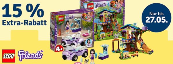 Wer noch Geschenke benötigt oder Kindern eine Freude machen möchte, bekommt jetzt ein super Angebot bei MyToys. Dort läuft ein sehr großzügiger Sale der Marke „Lego Friends“ wo man bis zu 41% Rabatt erhält. Und oben drauf gibt es noch einmal 15% Extra-Rabatt!