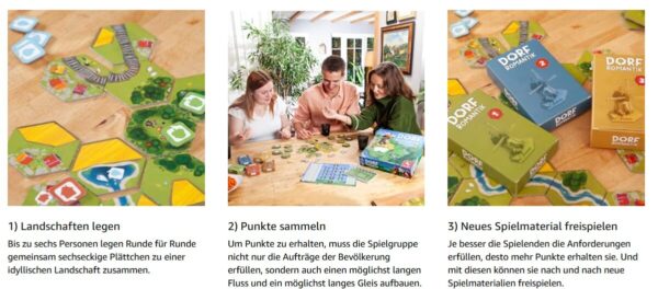 Bei Amazon gibt es das Pegasus Spiele 51240G Dorfromantik *Spiel des Jahres 2023* Brettspiele