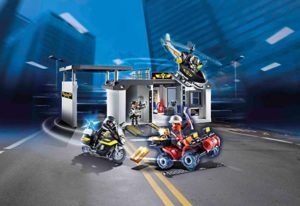 - Spielspaß für kleine Polizeifans: PLAYMOBIL Große Mitnehm-SEK-Zentrale mit Helikopter, Motorrad, Quad, 3 Polizisten, 1 Ganove und mehr zum Nachspielen