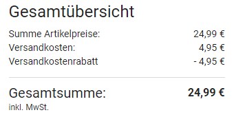 Der Versand sowie eine mögliche Retoure erfolgen kostenlos. 🙂