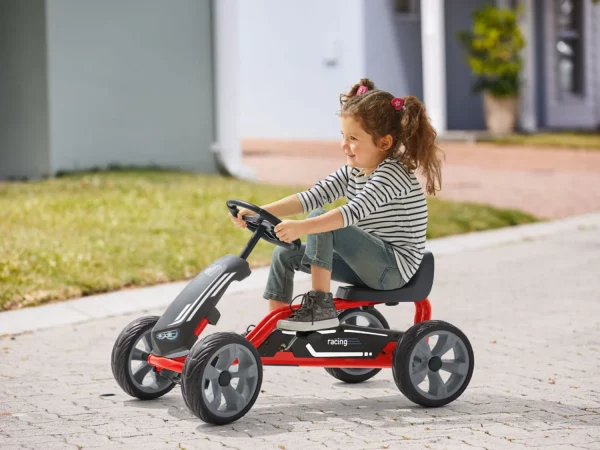 Go-Karts für Kinder sind in verschiedenen Größen erhältlich und werden oft aus robusten Materialien wie Kunststoff oder Metall gefertigt. Sie sind in der Regel mit Pedalen ausgestattet, die es den Kindern ermöglichen, das Fahrzeug durch Treten vorwärts zu bewegen. Einige Modelle verfügen auch über einen Lenker, mit dem das Kind die Fahrtrichtung steuern kann.
