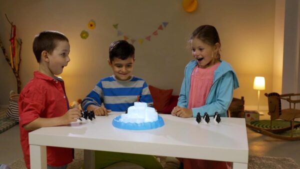 - Actionspiel für 1 bis 5 Spieler ab 4 Jahren. Bei einer Spieldauer von circa 15 Minuten wird ein Pinguin nach dem anderen auf den wackligen Eisberg gestellt. Wer als erster alle seine Pingunine darauf unterbring, gewinnt das Spiel
