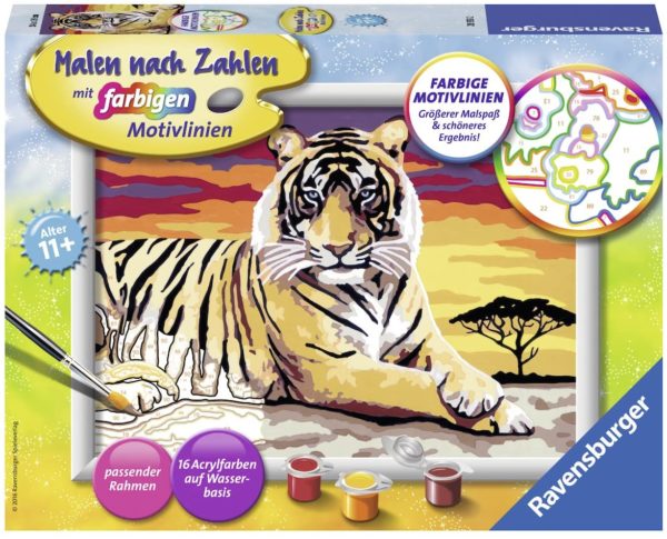 Bei Amazon gibt es für unbestimmte Zeit das Ravensburger Malen nach Zahlen (28553) – Majestätischer Tiger für 4,78€ (Vergleichspreis: ~15€) Ersparnis ~10€