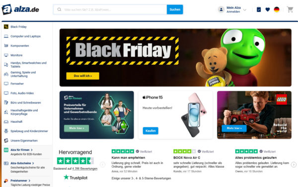 Bei alza.de einem Händler aus Prag, aber mit Versand aus Deutschland gibt es günstige LEGO-Artikel und andere Black Friday Artikel welche zum Teil in Deutschland schon ausverkauft sind.