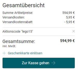 Galeria hat gerade eine schöne Aktion gestartet, bei der ihr 15% Rabatt auf LEGO bekommt, ab einem Bestellwert von 50€.