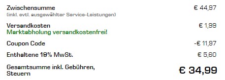 Die Lieferung in eine Filiale ist kostenlos, ansonsten kommen noch Versandkosten von 1,99€ hinzu.