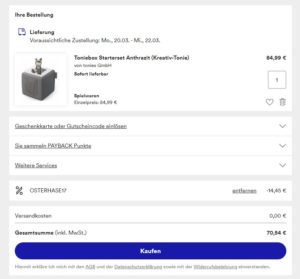 Bei Thalia bekommt ihr gerade die Toniebox Starterset (verschiedene Farben) für 70,54€ (Vergleichspreis ~81€) Ersparnis ~10€
