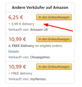Bei Amazon gilt: Bleibt euer Bestellwert unter 39€ fallen 3€/3,99€ Versand an. Habt ihr Amazon Prime dann entfallen die Versandkosten. Für USK 18 Games fallen einmalig 5€ je Bestellung an.