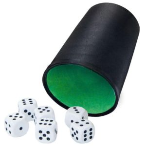 - Klassiker – Ein robuster Würfelbecher, 6 Würfel und ein Tisch: fertig sind die Utensilien für einen unterhaltsamen Spieleabend!