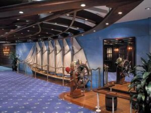 - Abends erwacht das Schiff mit Shows im Broadway-Stil, Casino Royale und 16 Bars und Lounges zum Leben. Die R Bar ist im mondänen Stil der 1960er Jahre gehalten, mit kultigen Möbeln und charakteristischen Cocktails, die von einem sympathischen Mixologen kreiert werden. Außerdem gibt es einen Pub im englischen Stil, eine Vintages-Weinbar, Broadway-Unterhaltung im dreistöckigen Theater, das Casino Royale mit 195 Spielautomaten und 12 Spieltischen sowie den Colony Club mit selbstnivellierenden Pooltischen und der Schooner Bar. Die Duty-Free-Shops locken mit Markenschmuck, Parfüm, Kleidung und vielem mehr.